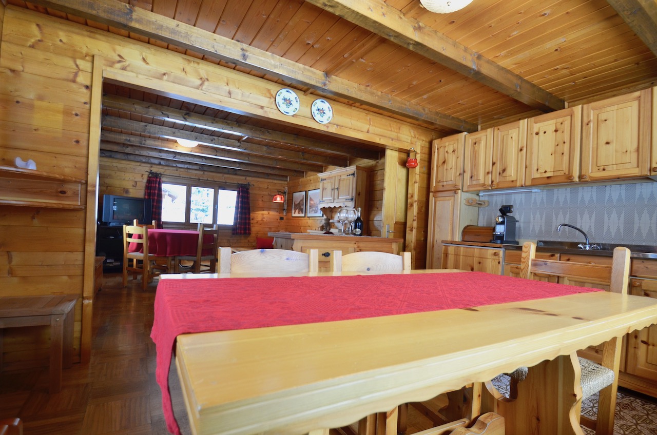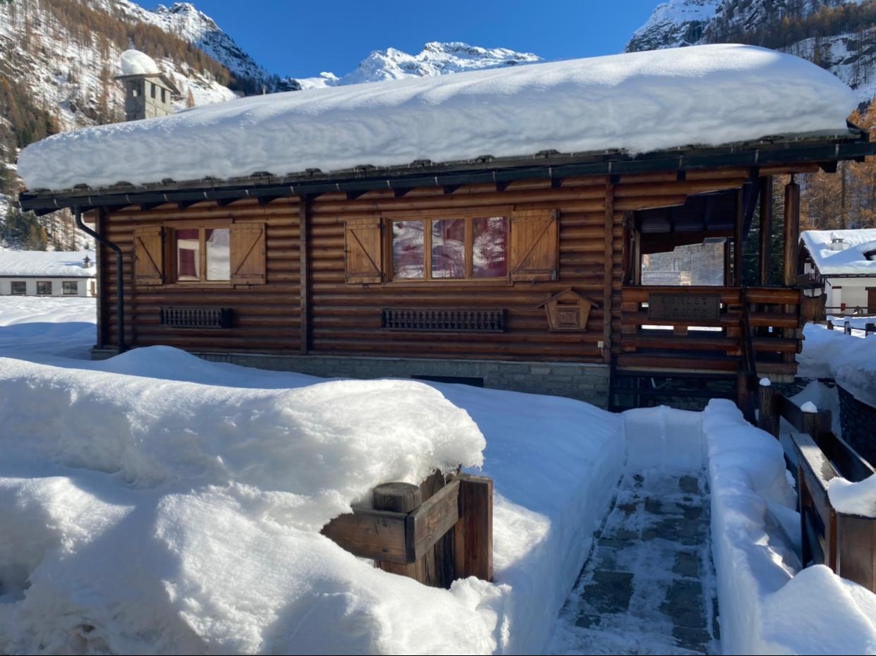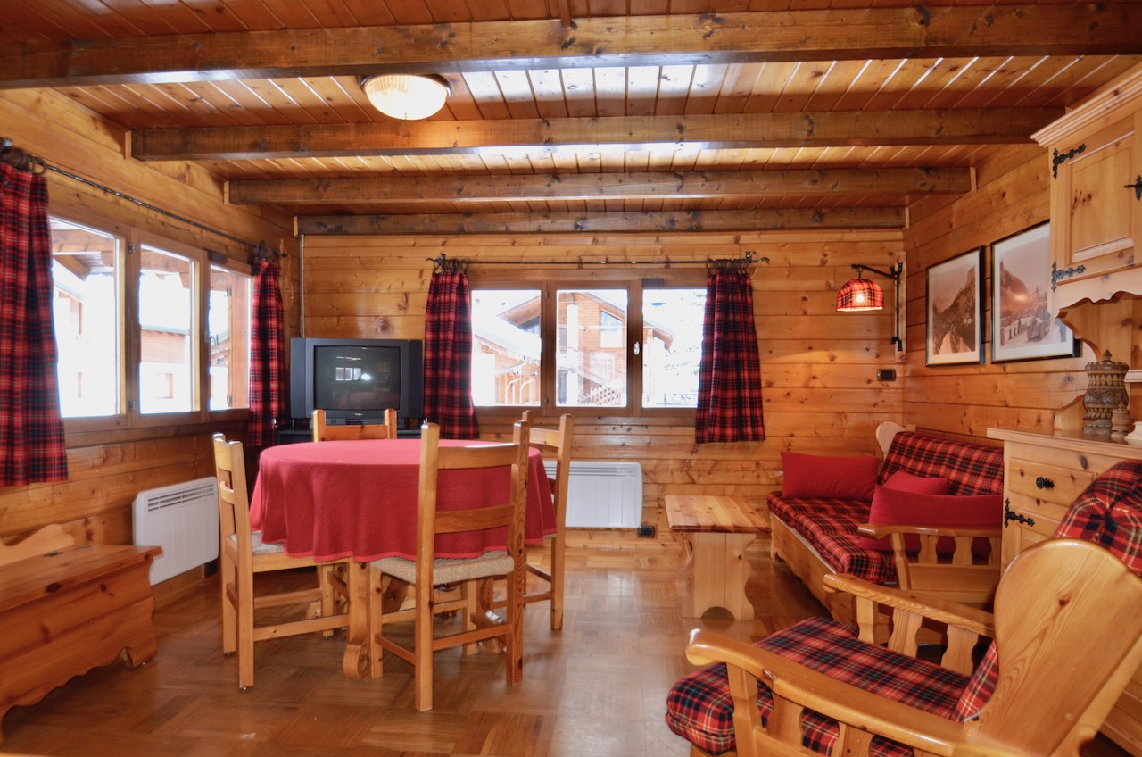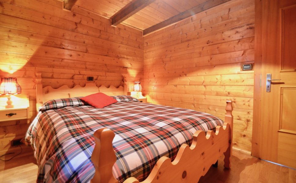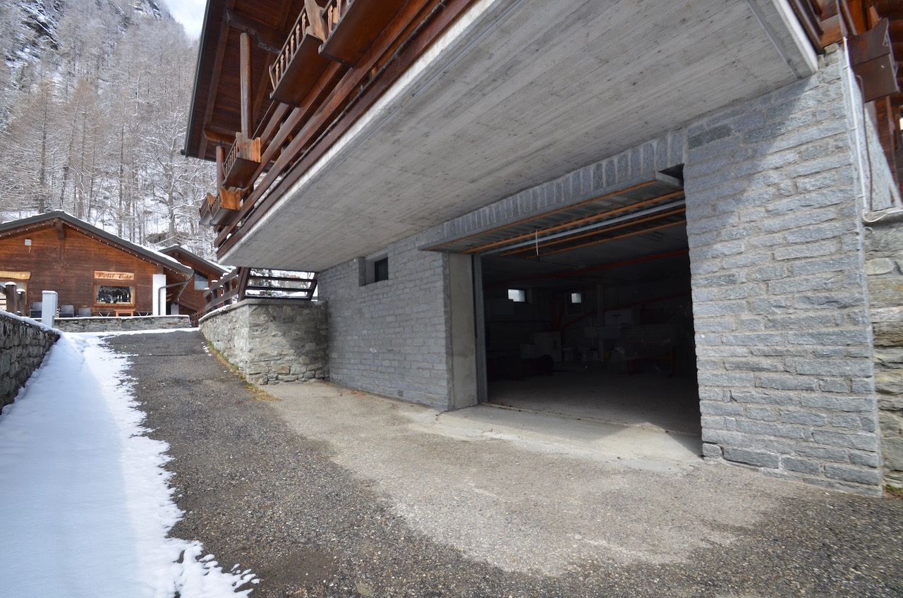 Edificato nella 1à metà degli anni ’80, l’immobile è costituito da un basamento seminterrato in muratura e piano rialzato prefabbricato in legno tipo “Blockhaus”. La tipologia costruttiva è in piena armonia con il contesto e coniuga elementi architettonici tipici della valle (pietra, legno e tetto in luserna). La zona abitativa si sviluppa interamente al Piano rialzato con: ingresso, soggiorno, angolo cottura, zona pranzo, disimpegno, n.2 camere da letto, bagno e terrazzo esposto a Sud. Al Piano terra: ampia autorimessa. Degna di nota la posizione strategica che consente l’accesso a piedi al comprensorio del Moterosa-Ski.