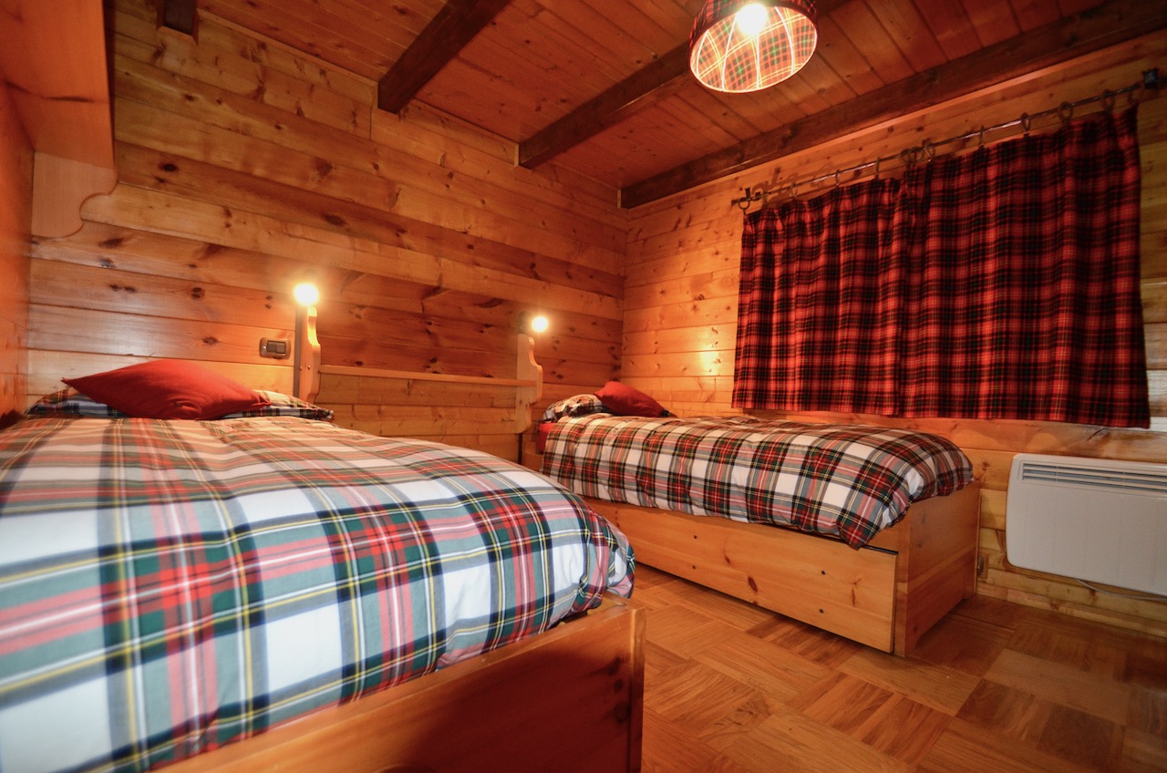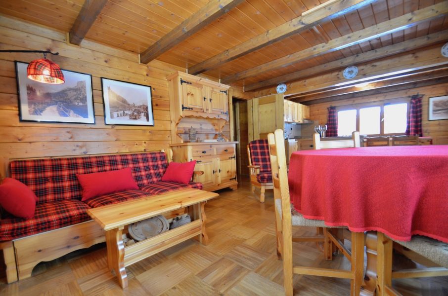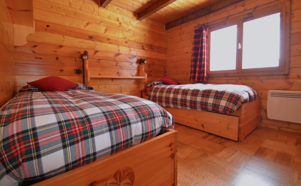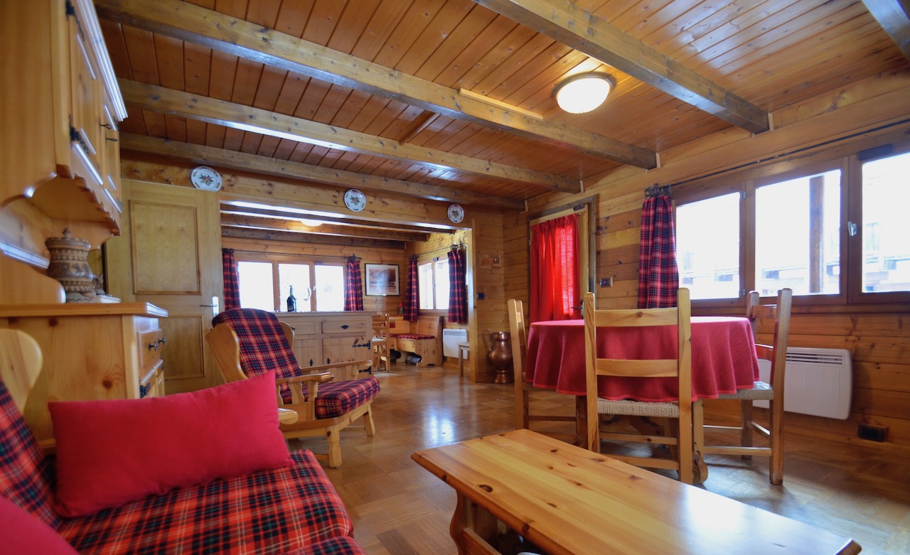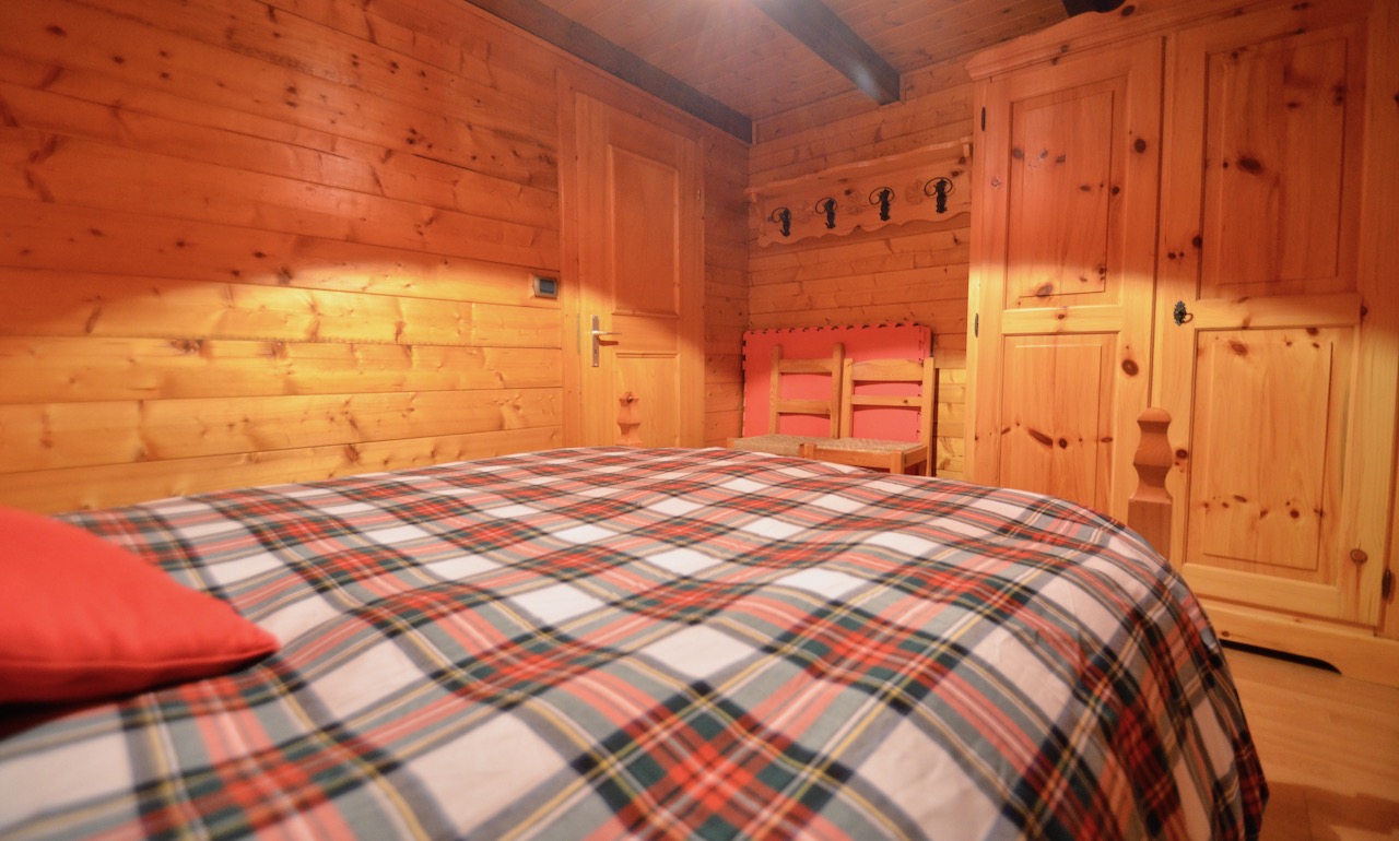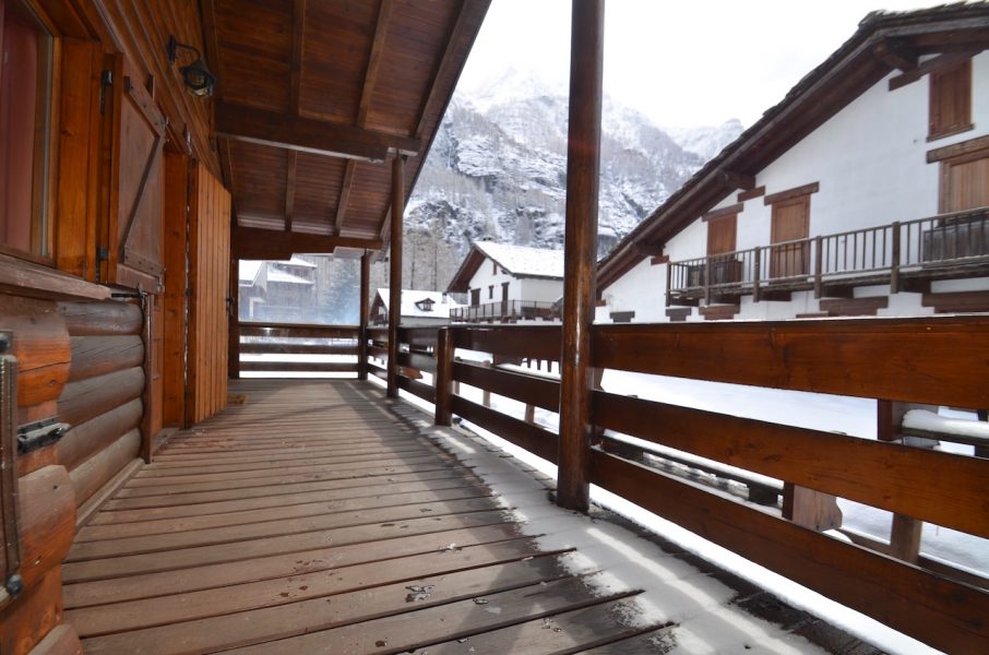 Edificato nella 1à metà degli anni ’80, l’immobile è costituito da un basamento seminterrato in muratura e piano rialzato prefabbricato in legno tipo “Blockhaus”. La tipologia costruttiva è in piena armonia con il contesto e coniuga elementi architettonici tipici della valle (pietra, legno e tetto in luserna). La zona abitativa si sviluppa interamente al Piano rialzato con: ingresso, soggiorno, angolo cottura, zona pranzo, disimpegno, n.2 camere da letto, bagno e terrazzo esposto a Sud. Al Piano terra: ampia autorimessa. Degna di nota la posizione strategica che consente l’accesso a piedi al comprensorio del Moterosa-Ski.