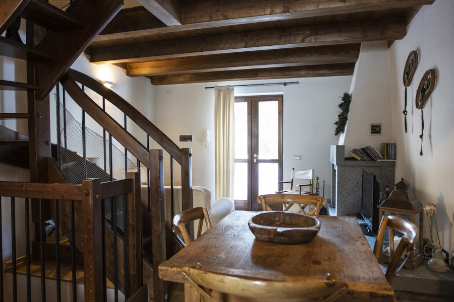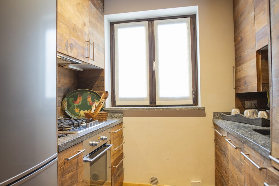 Al P.terra: ingresso, soggiorno, angolo cottura e bagno.